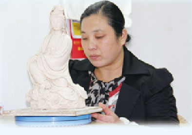許春玉,女,1966年3月出生。福建省陶瓷藝術(shù)大師、國家一級/高級技師。現(xiàn)任德化縣泰峰藝術(shù)瓷研究所藝術(shù)總監(jiān)。作品《渡海觀音》獲“天工藝苑·百花杯”中國工藝美術(shù)精品展金獎,《仙女散花》獲第三屆中國海峽工藝品博覽會銀獎,《青春之歌》獲第八屆全國陶瓷藝術(shù)設(shè)計創(chuàng)新評比銀獎。作品《牧羊女》被中國工藝美術(shù)館收藏,《嫦娥奔月》被福建省博物院收藏。