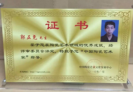 2016年經(jīng)中國陶瓷藝術(shù)文化發(fā)展中心評審委員會評定為“中國陶瓷藝術(shù)家”。