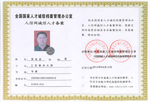 作品《四季爭艷》與《富貴平安》分別榮獲第十屆中國民族民間工藝品、旅游紀念品、禮品(含收藏品)博覽會金獎與銀獎,