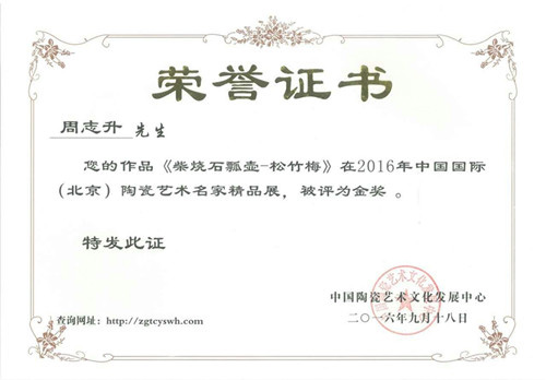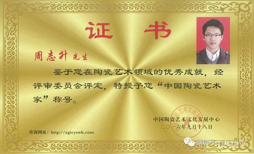 2016年經(jīng)中國陶瓷藝術(shù)文化發(fā)展中心評(píng)審委員會(huì)評(píng)定為“中國陶瓷藝術(shù)家"