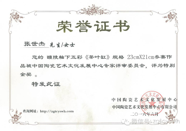 獲獎(jiǎng)證書: