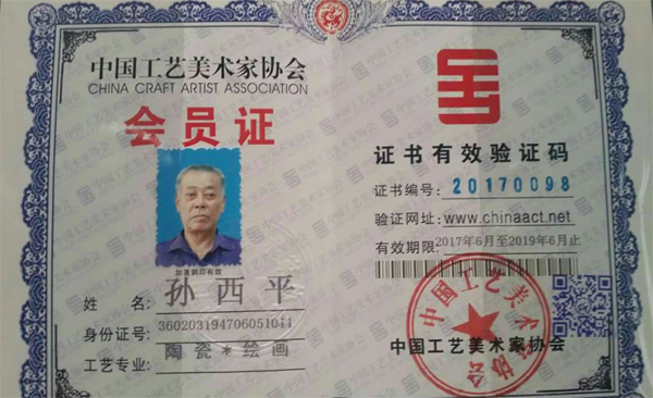 其作品深得陶瓷藏家和行家賞識、喜愛。2017年被中國工藝美術家協(xié)會評審為“高級傳統(tǒng)工藝師”。