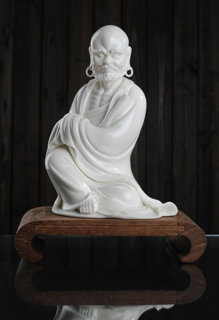 本人生長在陶瓷世家,從小酷爰美術(shù)陶瓷,1980年在泉州市陶瓷科學(xué)技術(shù)研究所,并師從著名瓷雕老藝人陳其泰習(xí)藝數(shù)年,得到技藝真?zhèn)鳎?7年創(chuàng)辦明玉陶瓷研究所,99年結(jié)業(yè)于中央工藝美院陶瓷雕塑設(shè)計系,現(xiàn)為中國藝術(shù)研究院訪問學(xué)者。從藝三十幾個春秋,其擅長傳統(tǒng)風(fēng)格結(jié)合現(xiàn)代藝術(shù)特征,形成自己風(fēng)格,創(chuàng)作有;觀音、彌勤、羅漢、關(guān)公、文昌帝、仕女等,歷史人物祌仙佛像故事及現(xiàn)代生活題材等作品,日用品采用手拉坯制作的香爐、花瓶、茶壺、酒具、文房四寶等。許多作品獲得國內(nèi)外金獎19項、銀獎7項、銅獎6項。作品深受藝術(shù)愛好者爭購及各大博物館的珍藏。長期以來潛心于藝術(shù)刨作又收藏德化窯古瓷與研究,現(xiàn)收藏品兩千余件整理形成館系,在2005年創(chuàng)辦“瓷藝堂”古瓷展覽館。學(xué)術(shù)理論總結(jié)撰寫十多編論文的發(fā)表,編著《德化窯古瓷珍品鑒賞》、《明清德化白瓷》等書!妒_漢》,創(chuàng)作于1993年春,榮獲永德信、明康文教基金會第一屆陶藝金陶獎特別獎;