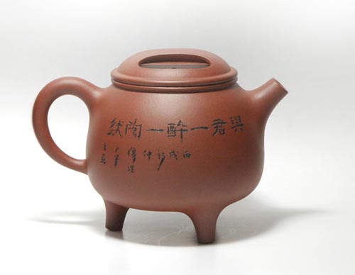 · 三足牛蓋寶鼎壺,以“鼎”為創(chuàng)作主題,以“土”為本體語言,融自然之型與藝術之魂為一體,濃厚的歷史,歲月積淀的文明,均在線條的承轉(zhuǎn)合宛里漸次蘇醒。三足頂立,壺身巍巍。泥色清純?nèi)峒殻┪⒐鉂呻[沒。壺蓋的造型巧心獨具,如牛張鼻孔,凝神時似聞嗬嗬聲。流與把的探出收回,似書法的起手與收勢,有酣然流暢美態(tài)。