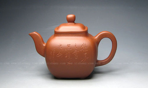 寓圓于方、敦實莊重的經(jīng)典造型,再現(xiàn)了清代陳鳴遠(yuǎn)的壺藝風(fēng)格。曲流舒展,環(huán)把穩(wěn)勢,壺底下附四餅形底足。制作精細(xì),質(zhì)樸大方,結(jié)構(gòu)嚴(yán)謹(jǐn),見工見力。蓋面微突,口蓋吻合緊湊,蓋頂與壺身形制對應(yīng),端莊穩(wěn)重中見挺拔瀟灑。