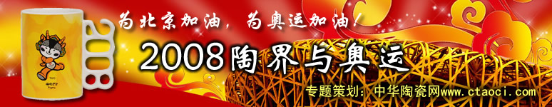 編輯按:29屆奧林匹克運(yùn)動(dòng)會(huì)將于2008年8月8日至24日在中國(guó)首都北京舉行,奧運(yùn)會(huì)申辦成功以來(lái),奧運(yùn)經(jīng)濟(jì)也隨之產(chǎn)生,本專題將通過(guò)奧運(yùn)給陶瓷界帶來(lái)的商機(jī)、影響與及奧運(yùn)瓷展示等方面介紹,將中國(guó)具有獨(dú)具特色的瓷器(china之稱)與奧運(yùn)相結(jié)合。 本專題同時(shí)也發(fā)布一些最新的奧運(yùn)動(dòng)態(tài)及奧運(yùn)常識(shí),歡迎關(guān)...[更多簡(jiǎn)介] |