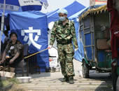 醫(yī)療隊軍醫(yī)在漢旺鎮(zhèn)受災群眾