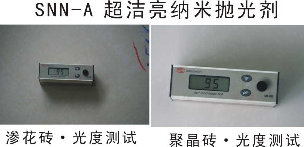 可以在超白磚、滲花磚、微粉磚等各類(lèi)陶瓷拋光磚表面形成一層具有特殊防護(hù)功能且結(jié)構(gòu)穩(wěn)定的納米級(jí)保護(hù)層,其材料粒度小至納米級(jí),完全填補(bǔ)磚面的氣孔和微裂紋,同時(shí)大幅提高磚體的光潔度,使瓷磚表面的光澤度可達(dá)90度以上,接近鏡面效果,通透晶瑩。形成的保護(hù)層與磚坯緊密結(jié)合,有效抗磨損保護(hù)層材料顆粒之間以及材料和磚坯之間緊密的分子鍵結(jié)構(gòu),也保證磚體具極強(qiáng)的抗磨性,長(zhǎng)期使用仍保持光潔如新。也提升陶瓷拋光磚的抗污性能。