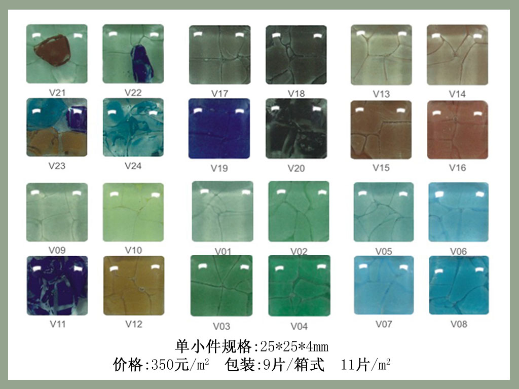 水晶玻璃馬賽克系列:每顆規(guī)格:25mm×25mm×6mm每片規(guī)格:300mm×300mm每平方:350元;每平方需11片;每箱重量:17KG;每箱可裝:16片亮迪佳水晶玻璃馬賽克適用于浴室、廚房、客廳、游泳池,酒吧等場(chǎng)所,給人一種時(shí)尚,清新的感覺(jué)。產(chǎn)品有多種規(guī)格,能組成混貼,漸變和幻彩,亞光系列。