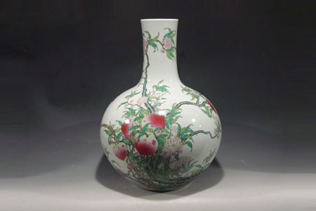 粉彩九桃天球瓶