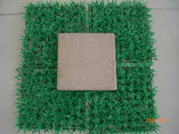 2、 半剛性基礎(chǔ)上的柔性鋪設(shè):按水泥:砂子為1:7比例充分?jǐn)嚢韬髮⑵淦戒佋谡綁簩?shí)的基礎(chǔ)上,厚度為25mm左右,然后鋪上巖土磚,再用細(xì)紗填磚縫。最后,在磚面上撒上水,水通過磚縫滲到墊沙層上,可有效地增強(qiáng)磚與墊沙層地結(jié)合力。