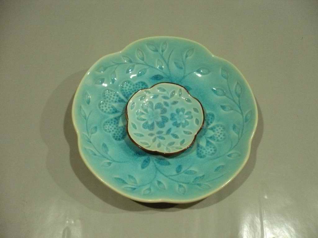 刻花碟---10.2×10.2×1.8 刻花盤---23.3×23.3×4.5 |