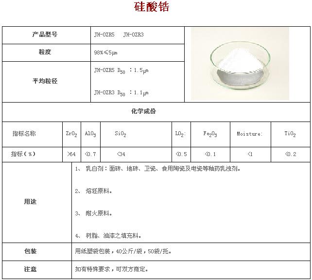硅酸鋯 產(chǎn)品型號(hào) JH-0ZR5 JH-0ZR3