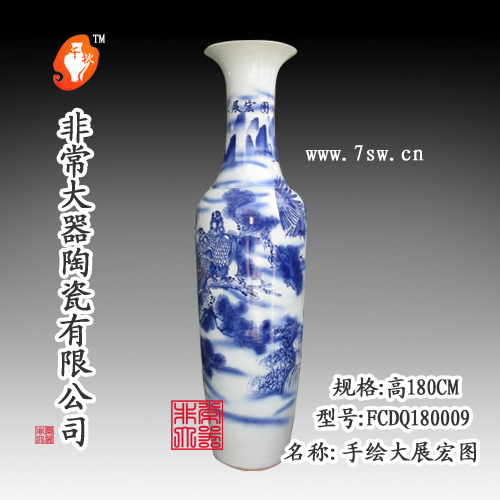 公司級禮品 岷天大花瓶 送禮上檔次 收禮有面子 三點六萬 全國包運 【岷 天】:中國 大花瓶 第一品牌 【非常大器】:中國首家大花瓶專營公司 中國專業(yè)大花瓶定制機構(gòu) 【名 稱】:岷天大花瓶 民窯精品 民間藝術(shù)品 【型 號】:岷天大花瓶標(biāo)準規(guī)格為高1.8米\2.2米\3米\3.5米 (其中廳堂高度5米以下適用1.8米與2.2米高花瓶,廳堂高度5米以上適合用3米與3.5米大花瓶) 【價 格】:2011年價格,三米高3.6萬元一對、二米二高1.8萬一對、一米八高1.2萬元一對。 【鄭重承諾】:全國包運、破損包賠。 【定購流程】:您通過電話或者網(wǎng)絡(luò)確定訂單,其余事情都由我公司負責(zé),將在五天左右將大花瓶安全高效運到客戶指定城市。 【產(chǎn)品特點】:岷天大花瓶為景德鎮(zhèn)非常大器陶瓷有限公司出品的頂級禮品瓷器,適應(yīng)大場所,大場面。從顏色方面、造型方面都搭配非常協(xié)調(diào)。從檔次上考慮,花瓶為民間藝術(shù)家手工繪畫,手工制作,包括胚胎都是非?季康,而且如此有氣勢、紀念意義強烈的花瓶,做為禮品是非常珍貴的。是政府之間、公司之間、客戶之間、朋友之間禮尚往來的見證,是往來嘉賓關(guān)注的焦點,特點就在于它的大氣、美觀,珍貴,保存時間長,吸引眼球,欣賞率高,讓大家都會記得您的大禮! 【送禮范圍】:岷天大花瓶多用于大廳、門廳、客廳等廳堂擺設(shè),主要用于、政務(wù)禮品、商務(wù)禮品、紀念禮品,開業(yè)禮品。用于建筑落成、工程竣工開業(yè)、奠基典禮、酒店賓館陳設(shè)、企事業(yè)單位喬遷、周年紀念 、學(xué)校校慶、搬遷新居等。 【特殊訂制】:有特殊需要,在大花瓶身上可燒制LOGO、公司名稱、人名、贈言,紀念用語,年月日等。 【產(chǎn) 地】:中國景德鎮(zhèn)。 【包 裝】: 加固安全木架包裝。 【運 輸】:國內(nèi)采用公路物流運費,五天左右到達,我們有專業(yè)物流發(fā)貨基地,確保貨物安全、高效地到達客戶手中! 岷天大花瓶幾大吉祥寓意 【諸事平安】 花瓶類瓷器,極易破損,只有在太平和睦環(huán)境中才能保全,古人說家有花瓶人安樂,廳堂中擺放大花瓶,是萬事平安的像征。 【富貴滿堂】 自古以來,大件瓷器罕有,只有皇親貴族、達官顯貴家才有擺設(shè),廳堂擺放大花瓶,是官運亨通,富貴滿堂的像征。 【財源廣進】 大花瓶以山水類題材較多,水在中國就是財富的說法,廳堂擺放大花瓶,像征著財源廣進。 【鎮(zhèn)宅之寶】 岷天大花瓶,由金(釉料顏料)+木(燒窯之木柴)+水(和泥拉坯造型)+火(燒制)+土(瓷土)五種元素制成,能彌補建筑或建筑內(nèi)的人員的五行不足,扶正驅(qū)邪,廳堂擺放大花瓶,起著鎮(zhèn)宅的作用。 【公司簡介】景德鎮(zhèn)非常大器陶瓷有限公司,作為中國首家大花瓶專營公司,是以設(shè)計、加工、定制陶瓷大花瓶專業(yè)機構(gòu),公司開發(fā)出岷天牌陶瓷大花瓶,1.8米系列\(zhòng)2.2米系列\(zhòng)3米系列\(zhòng)3.5米系列等標(biāo)準尺寸大花瓶,工藝上采用青花\釉里紅\墨彩\粉彩\新彩\顏色釉\書法\雕刻等景德鎮(zhèn)民間傳統(tǒng)手工技藝制作,歡迎新老客戶商洽。 我們的宗旨:宏揚景德鎮(zhèn)民間瓷器文化 我們的目標(biāo):打造中國大花瓶第一品牌。 我們的理念:真誠維護客戶利益、真心關(guān)注員工成長、真情回饋社會關(guān)愛。 |