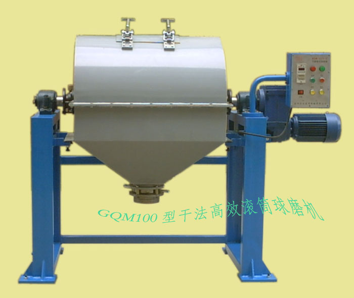 干法球磨機(jī)、干法臥式球磨機(jī)、干法滾筒球磨機(jī)-GQM型干法高效滾筒式球磨機(jī)是一種采取干法的形式對(duì)物料進(jìn)行粉磨的設(shè)備。該機(jī)由球磨罐和回收罩兩部分組成。工作過(guò)程是:打開(kāi)回收罩窗蓋和球磨罐筒蓋,把下料斗放進(jìn)球磨罐內(nèi),物料通過(guò)下料斗加到球磨罐內(nèi),蓋上球磨罐罐蓋及回收罩窗蓋,即可開(kāi)機(jī)工作。干法高效滾筒球磨機(jī)在連續(xù)粉磨過(guò)程中,研磨到所需粒度的物料通過(guò)安裝在球磨罐上的萬(wàn)孔篩篩分出來(lái),落到回收罩內(nèi),而相對(duì)較粗的物料滯留在球磨罐內(nèi)繼續(xù)研磨,故不作無(wú)用功,能高效研磨物料。干法高效滾筒式球磨機(jī)工作一段時(shí)間后,就可打開(kāi)回收罩放料閥,放出磨好的物料。GQM-T型干法高效滾筒式球磨機(jī)可廣泛在磁性材料、藥物原料、陶瓷原料、玻璃原料、金屬粉末、合金粉末、稀有金屬提煉等行業(yè)使用。 GQM型干法高效滾筒式球磨機(jī)具有以下特點(diǎn):(一)罐體轉(zhuǎn)速優(yōu)化設(shè)計(jì),可使球磨罐體內(nèi)的介質(zhì)球形成傾流式運(yùn)動(dòng)分散物料,獲得最佳的研磨效果,能較快的把物磨細(xì)料。(二)該機(jī)為直聯(lián)式傳動(dòng)結(jié)構(gòu),由電動(dòng)機(jī)驅(qū)動(dòng)斜齒輪減速機(jī),減速機(jī)輸出空心軸直接套在磨球罐傳動(dòng)軸上,并裝有減速機(jī)啟動(dòng)減沖擊墊。具有傳動(dòng)扭矩大,機(jī)械效率高,啟動(dòng)平穩(wěn)的特點(diǎn),并免除了經(jīng)常性調(diào)整傳動(dòng)帶帶來(lái)的麻煩。(三)該機(jī)采用了數(shù)顯時(shí)間控制器控制,根據(jù)需要可隨時(shí)設(shè)定工作時(shí)間,并具有暫停、累加定時(shí)控制功能,操作省時(shí)省力,輕松方便。(四)回收罩密封嚴(yán)密,不會(huì)對(duì)周圍環(huán)境造成污染,出料口采用大口徑90旋閥放料閥,使用特別方便。 說(shuō)明:(1)該機(jī)適合容重在5以下的物料,容重大于5時(shí),需另訂做。(2)基本型為碳鋼材料制造,也可為用戶訂做不銹鋼、錳鋼或氧化鋁瓷、氧化鋯瓷、尼龍、聚氨酯、耐磨橡膠等內(nèi)襯球磨機(jī)。(3)也可根據(jù)用戶需要,選配變頻器調(diào)速。規(guī)格有70升、100升、200升、300升、500升、1000升、1500升。