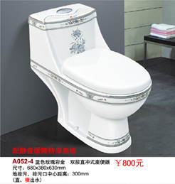 A052-4 藍(lán)色玫瑰彩金 雙按直沖式座便器 尺寸:680*380*630mm 地排污,排污口中心距離 300MM (直,橫出水) |