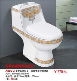 黃花金邊彩金雙按直沖式座便器 775元 尺寸:680*350*650mm 地排污,排污口中心距離:300mm (直,橫出水) |