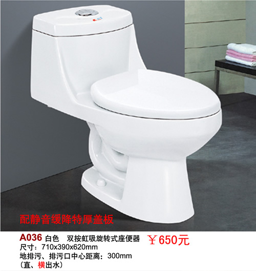 A036 白色 雙按虹吸旋轉式座便器 ¥650元