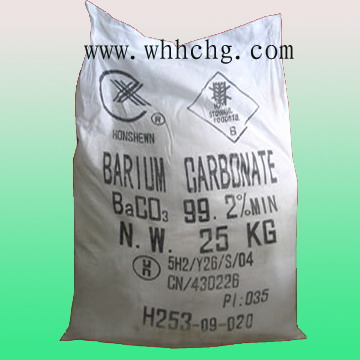 碳酸鋇 分子式:BaCO3 分子量:197.35 產(chǎn)品性狀:本產(chǎn)品系無(wú)定形白色粉末,比重:4.43,熔點(diǎn):1740℃(90大氣壓),1450℃分解失去二氧化碳,不溶于水,不溶于酒精,能溶于酸及氯化銨溶液?诜卸,進(jìn)入胃內(nèi),溶于酸中變成可溶性的氯化鋇,故能發(fā)生中毒,系有毒品之一。 執(zhí)行標(biāo)準(zhǔn): 項(xiàng)目 優(yōu)等品 一級(jí)品 合格品 含量(BaCO3)%≥ 99.2 99.0 98.5 水份%≤ 0.30 0.30 .050 鹽酸不溶物灼燒殘?jiān)?≤ 0.15 0.25 0.50 總硫%≤ 0.20 0.30 0.40 鐵%≤ 0.004 0.004 0.008 細(xì)度:粉狀125μm試驗(yàn)篩篩余物%≤ 0.20 0.30 .050 細(xì)度:粉狀850μm試驗(yàn)篩篩余物%≤ 1 1 1 細(xì)度:粉狀150μm試驗(yàn)篩篩余物%≥ 75 75 75 用途:化工行業(yè)及洗滌劑廠生產(chǎn)磷酸五鈉等產(chǎn)品用碳酸鋇脫硫。電鍍行業(yè)用以含鉻污水處理。玻璃行業(yè)中用于X光玻璃、注射藥瓶、燈泡、玻殼、玻梗等玻璃產(chǎn)品中,能使玻璃潔白、堅(jiān)硬。用于高頻瓷,可增加瓷的潔白度。用以配制滲碳劑,改善中碳鋼材的結(jié)構(gòu)。在陶瓷工業(yè)中,用作助熔劑。還可以用作凈水劑和殺鼠劑。 包裝規(guī)格: 用內(nèi)襯塑料袋,外加塑料編織包裝,每袋凈重25公斤或50公斤。 |