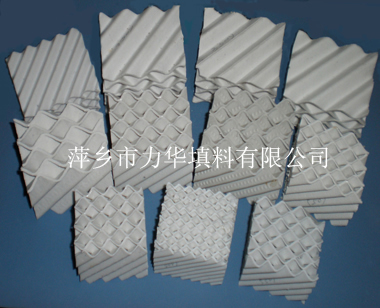 陶瓷波紋規(guī)整填料 產(chǎn)品概述 陶瓷波紋規(guī)整填料是一種新型規(guī)整填料,陶瓷波紋規(guī)整填料是由許多具有相同幾何形狀的填料單元體組成。由于陶瓷獨(dú)特的結(jié)構(gòu),具有良好的親水性能,其表面可形成極薄的液膜的湍動及氣流的傾斜曲折通道能促進(jìn)氣流但又不阻擋氣流使陶瓷填料能與金屬填料相匹敵,而其耐腐蝕、耐高溫性能金屬填料卻無法相比。表面結(jié)構(gòu)有良好的濕潤性能,能使液體加快流動、使填料滯液量降至最低。從而降低了過熱、聚合和結(jié)焦的機(jī)會。 化學(xué)性能 SiO2 | Fe2O3 | CaO | Al2O3 | MgO | Other | ≥72% | ≤0.5% | ≤1.0% | ≥23% | ≤1.0% | 2% |