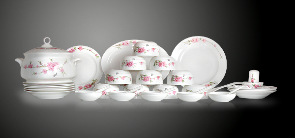 產(chǎn)品介紹:名稱景德鎮(zhèn)優(yōu)質手繪水點桃花餐具56頭骨瓷餐具