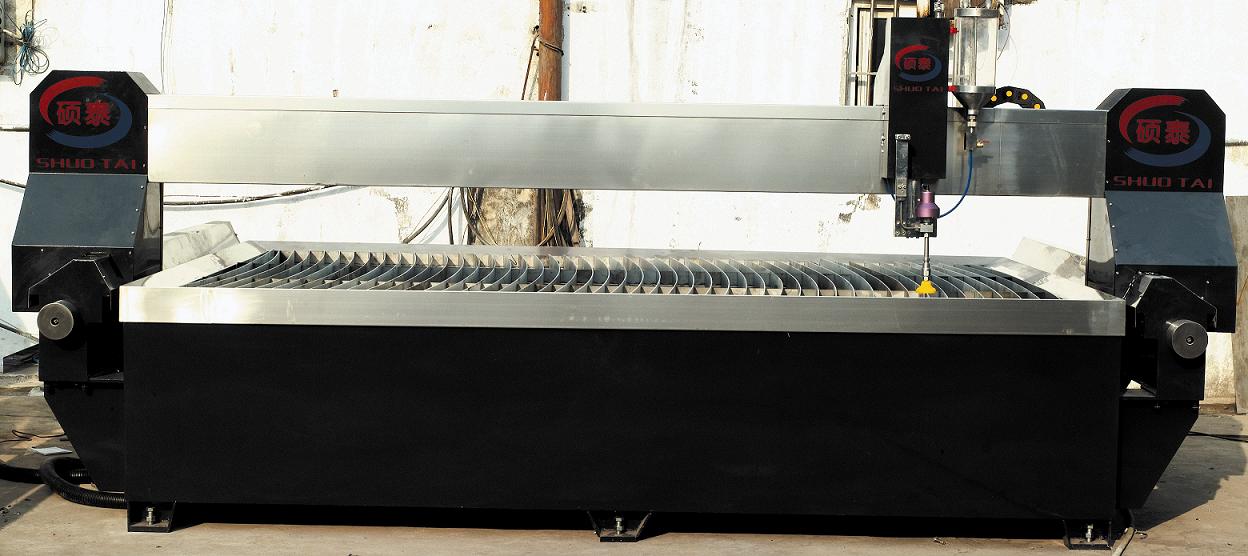 產(chǎn)品型號(hào):ST-3020 產(chǎn)品說明: 超高壓數(shù)控水切割機(jī)(懸臂式),是在現(xiàn)今激烈競爭的環(huán)境下,我司配合企業(yè)追求高精度、高速度、高效率的現(xiàn)代加工方式,憑借強(qiáng)大的技術(shù)力量,優(yōu)越的生產(chǎn)條件和多年制造深加工設(shè)備的豐富經(jīng)驗(yàn),開發(fā)和制造的一系列超高壓數(shù)控水切割機(jī)。先進(jìn)的全電腦數(shù)控控制加工,不僅能加工各種金屬材料,如鋼、鐵、銅、鋁等等,還能加工各種非金屬材料,如大理石、花崗巖、陶瓷、玻璃,甚至微晶石。為各大廠家生產(chǎn)各種精美的的拼花、復(fù)雜的二維藝術(shù)文字提供了便利。“碩泰”系列超高壓數(shù)控水切割機(jī),為古典的或現(xiàn)代的裝飾藝術(shù)提供了強(qiáng)大的加工手段。 “碩泰”系列超高壓數(shù)控水切割機(jī)特點(diǎn): 1、數(shù)控水刀切割機(jī),配有全封閉軸向?qū)к壪到y(tǒng);